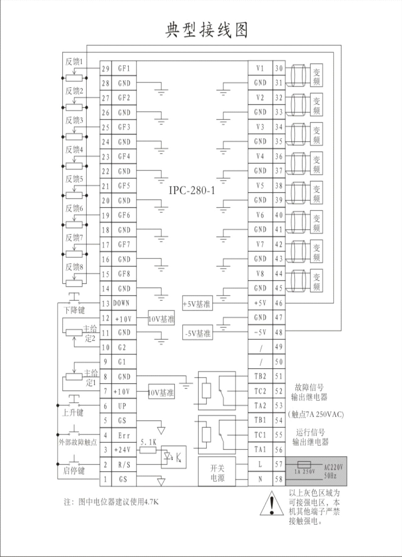 同步控制器IPC-280介绍 IPC-280 (原SAD280) 为上海黎升工业控制设备有限公司成熟产品。本产品经过多年的工业现场考验和设计、工艺的不断完善,功能实用,抗干扰能力强,稳定可靠。 同步控制器IPC-280的主要特点如下: ☆内含八路独立可编程模拟单元,一路内部主给定,两路外部主给定,八路外部反馈输入,内带±5V反馈电源。 ☆内部主给定可采用上升、下降端子外接按钮进行调节 同步控制器IPC-280说明书下载地址